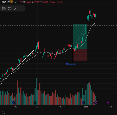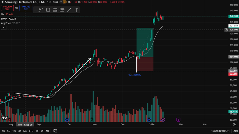 Samsung was trading around 104,000 KRW at a time when the company was already showing strong fundamental momentum. Earnings were improving, business performance was solid, and the broader narrative around the company was turning positive.
